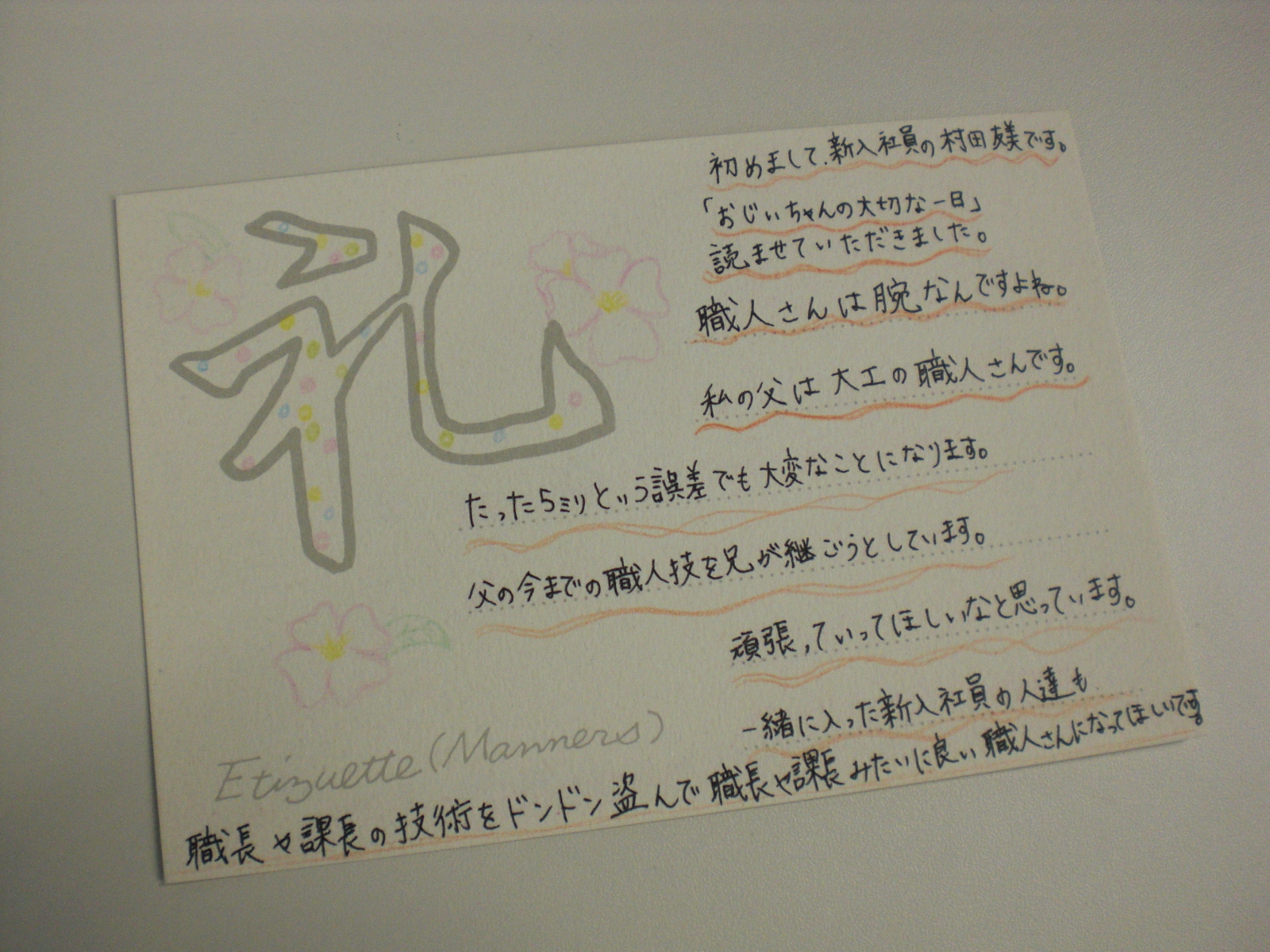 ¤·¤Ã¤«¤ê¤È³¨ËÜ¤ÎÆâÍÆ¤ò¤È¤é¤¨¡¢¼«Ê¬¤ËÃÖ¤´¹¤¨¡¢¤½¤·¤Æ»³ÅÄÀ½ºî½ê¤ËÃÖ¤´¹¤¨¤Æ´¶ÁÛ¤ò´Ê·é¤Ë½ñ¤¤¤Æ¤¯¤ì¤Þ¤·¤¿¡ÊÆóÆü¤«¤«¤Ã¤Æ¤¤¤Þ¤¹¤±¤É¡Ê¾Ð¡Ë¡Ë